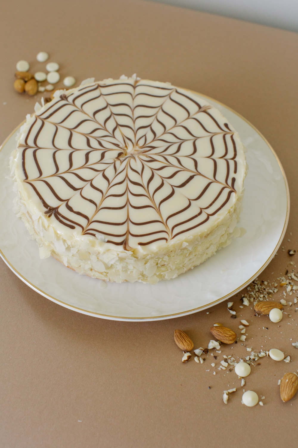 Состав: Миндальная мука, яйца, молоко, масло сливочное, сахар, цедра лимона, миндальные лепестки, ванильный сахар