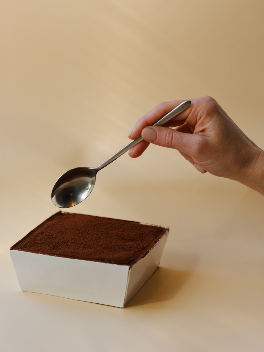 Состав: Яйца, мука, крахмал, сахар, кофейная паста, соль, сыр маскарпоне, пастеризованные желтки, сахарная пудра, желатин, ром, какао