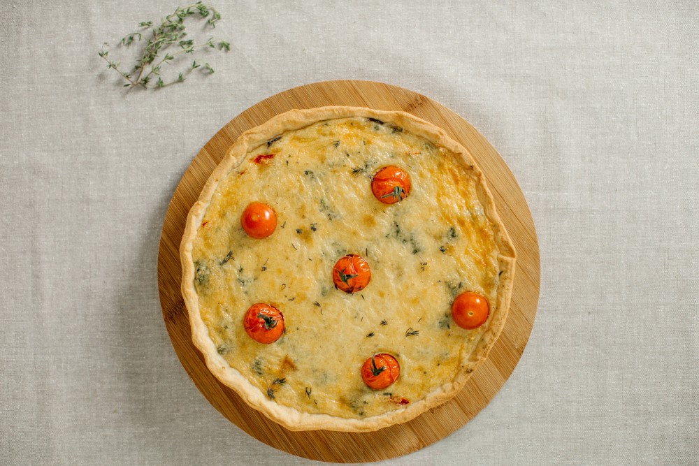 Состав: Пшеничная мука, сливочное масло, творог, цуккини, баклажаны, помидоры черри, шпинат, свежий перец, сыр фета, сливки, сыр тильзитер, яйца, сахар, соль, перец, мускатный орех
